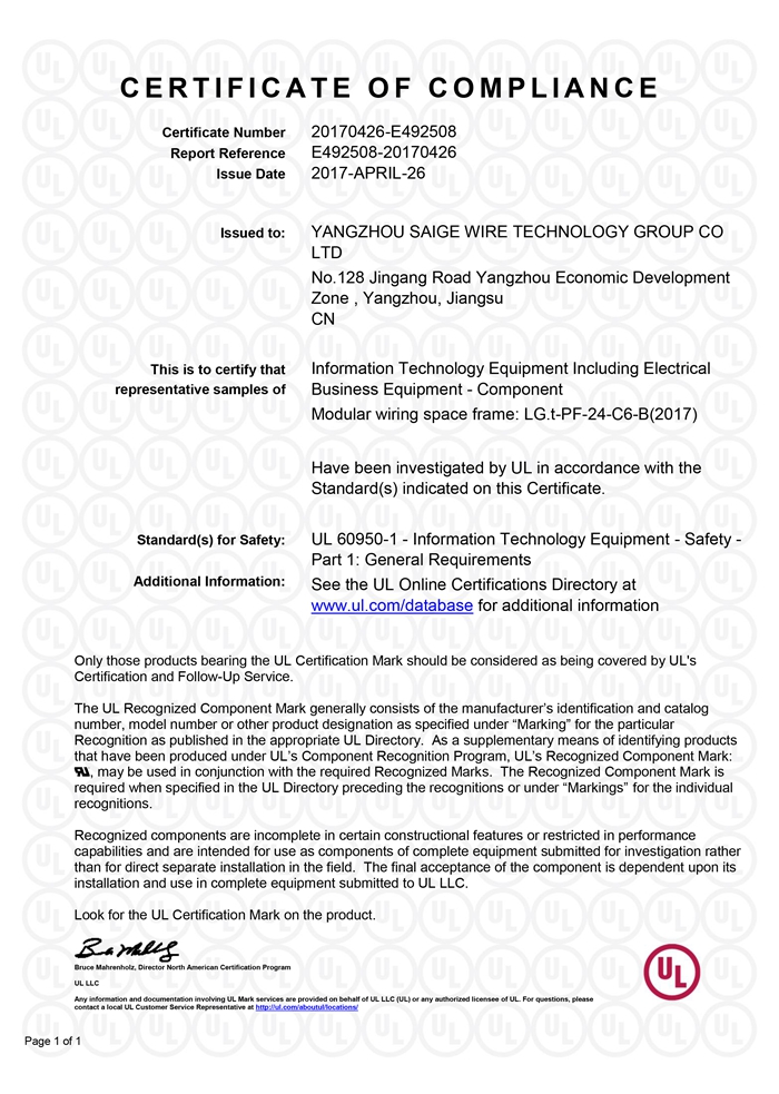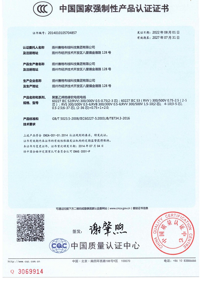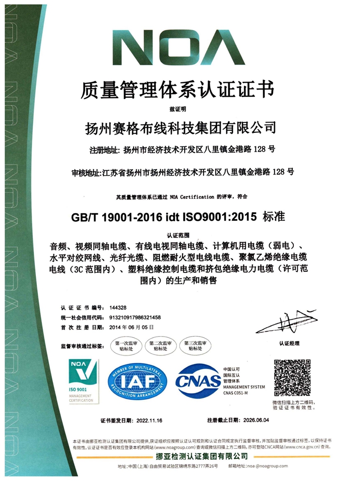 “賽格集團(tuán)”位于美麗的揚(yáng)州,公司占地面積106800平方米,固定資產(chǎn)20000萬元,職工近千人,其中各類專業(yè)技術(shù)人員過百人,系中國安全防范產(chǎn)品行業(yè)協(xié)會理事單位。公司擁有各種先進(jìn)的綜合布線產(chǎn)品及線纜制造和實(shí)驗(yàn)檢測設(shè)備,產(chǎn)品嚴(yán)格按照國家標(biāo)準(zhǔn)或行業(yè)標(biāo)準(zhǔn)組織生產(chǎn),并已獲得國家質(zhì)量認(rèn)證中心CQC頒發(fā)的CCC證書和上海挪亞檢測認(rèn)證集團(tuán)有限公司頒發(fā)的ISO9001:2015證書,泰爾認(rèn)證中心頒發(fā)的“泰爾認(rèn)證”等!